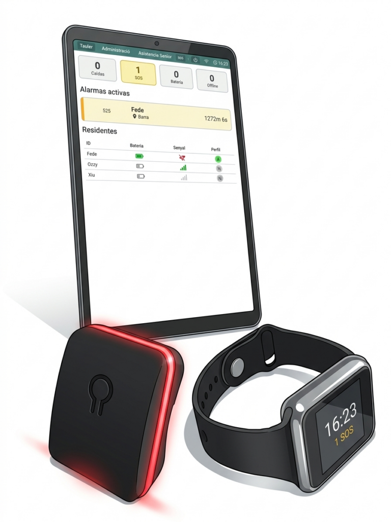 - Hub central: Alerta sonora y visual en el hub instalado en la sala de enfermería